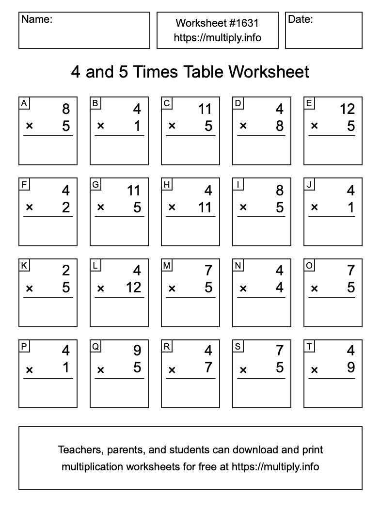 4 and 5 Times Table Worksheet #1632