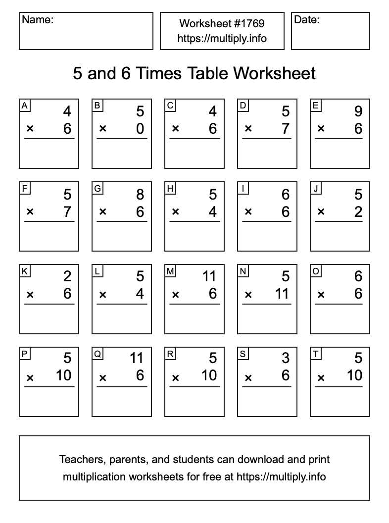5 and 6 Times Table Worksheet #1770