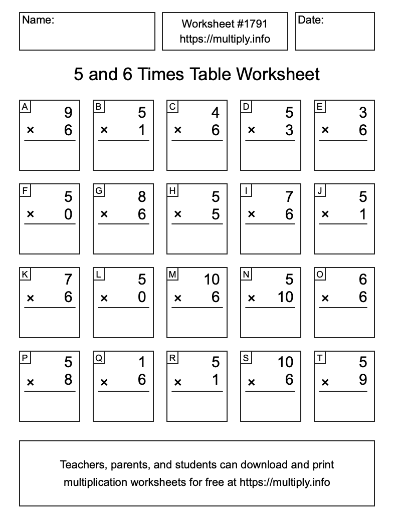 5 and 6 Times Table Worksheet #1792