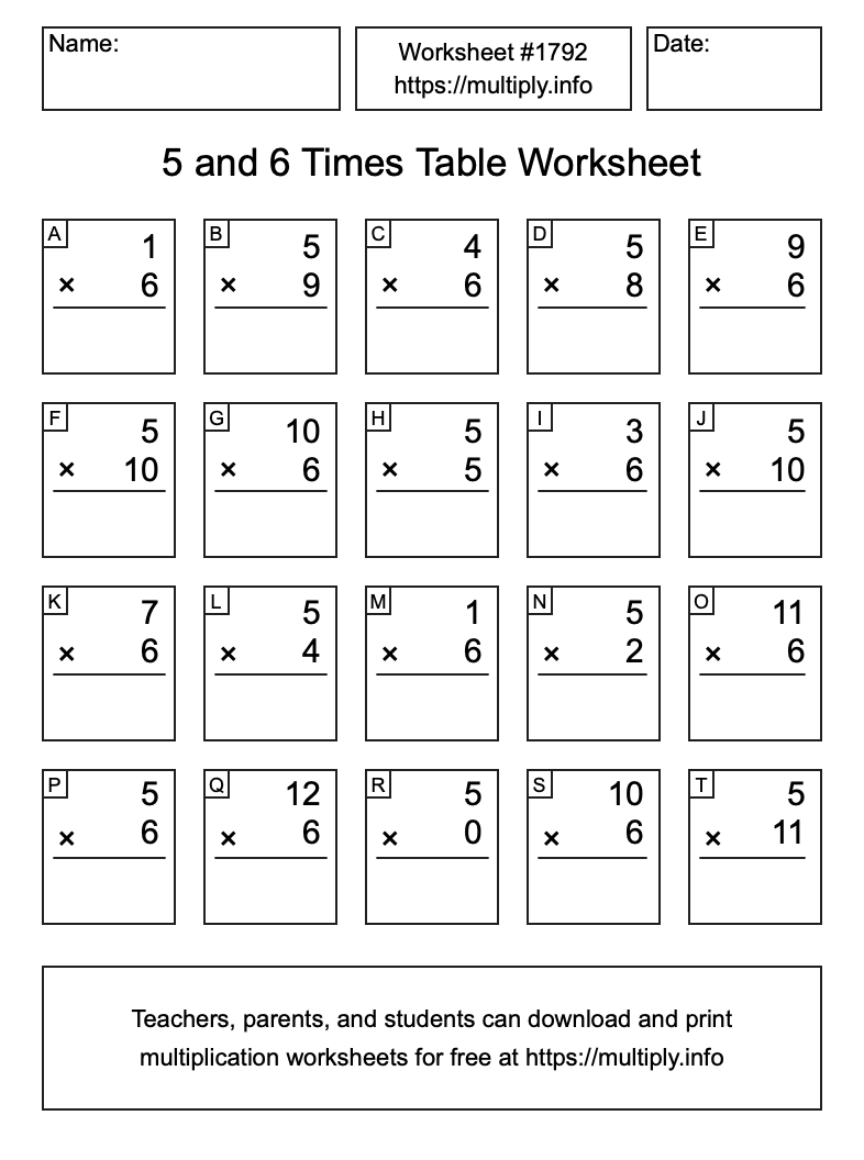 5 and 6 Times Table Worksheet #1793