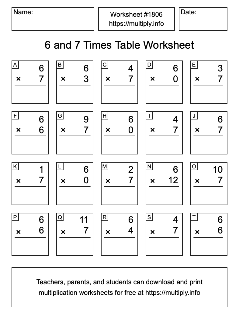 6 and 7 Times Table Worksheet #1807