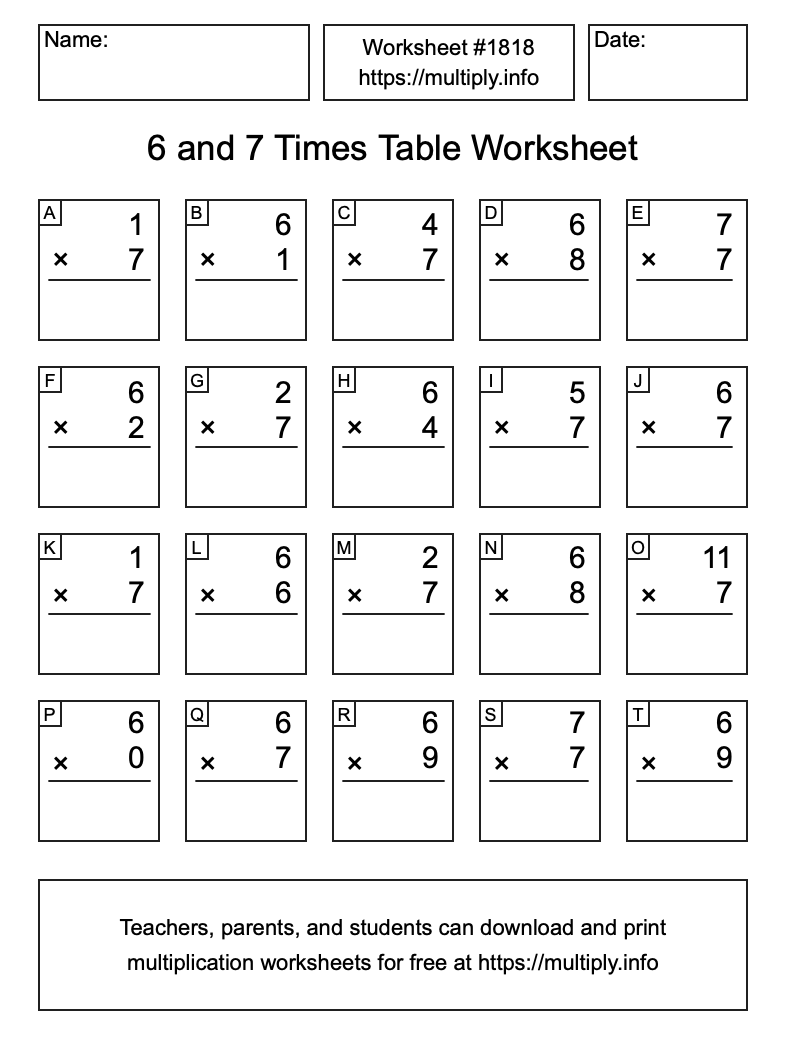 6 and 7 Times Table Worksheet #1819