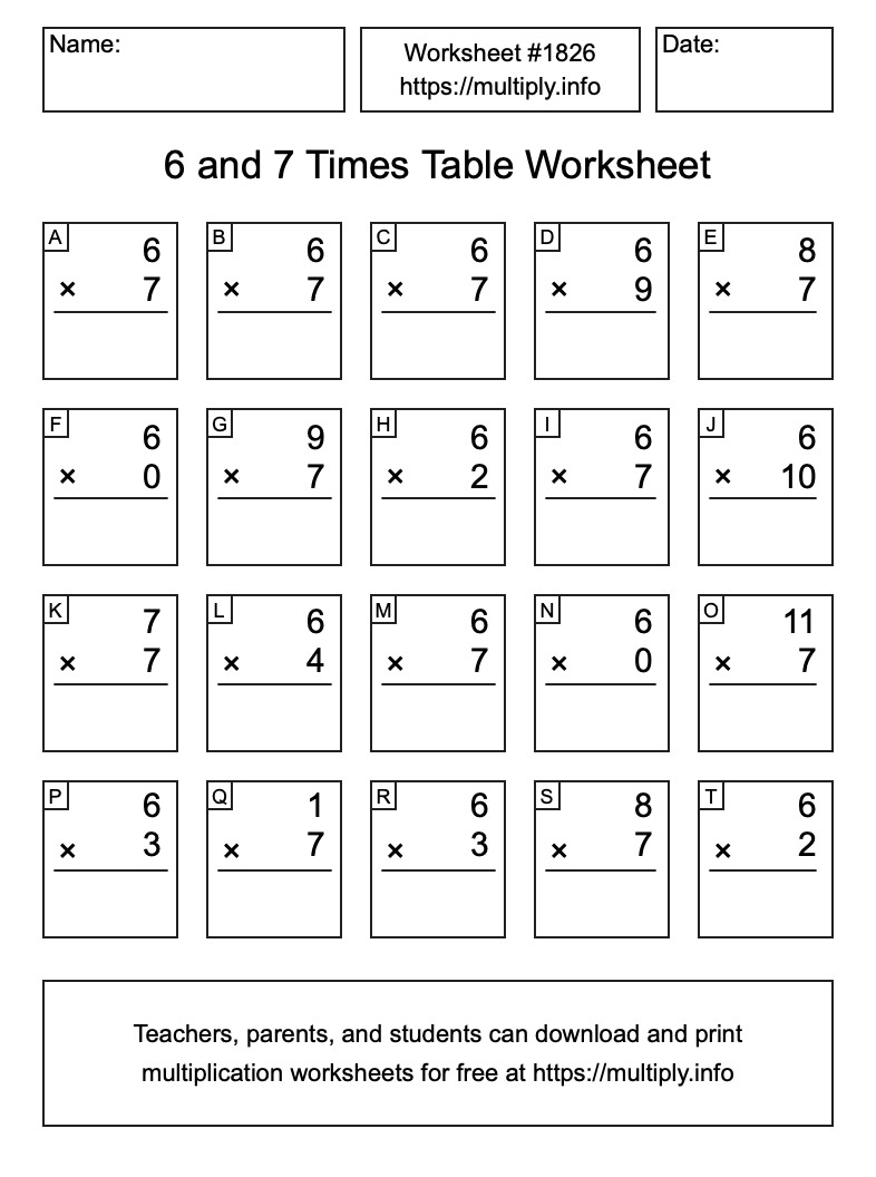 6 and 7 Times Table Worksheet #1827