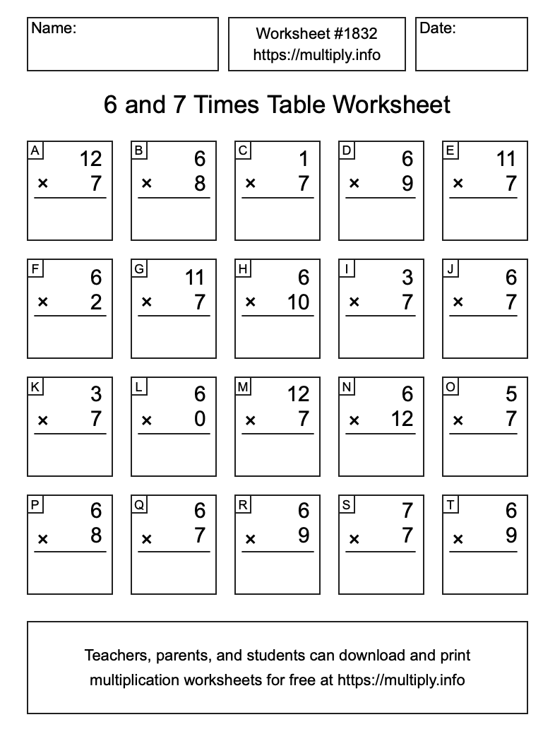 6 and 7 Times Table Worksheet #1833