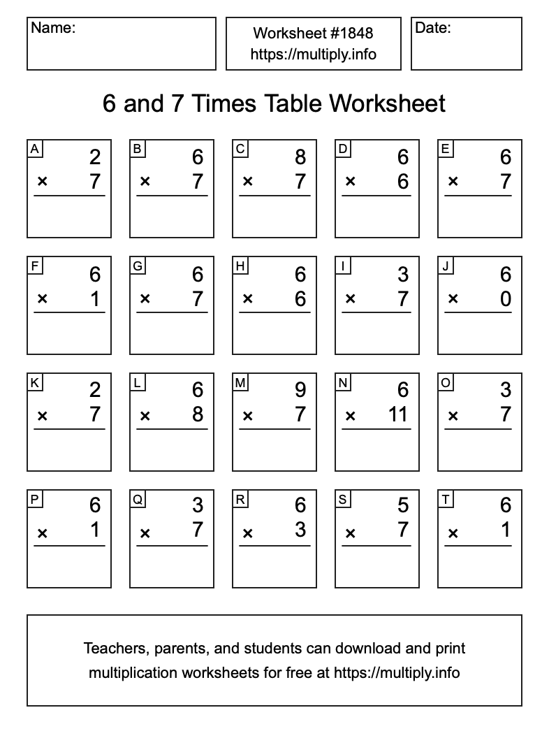 6 and 7 Times Table Worksheet #1849