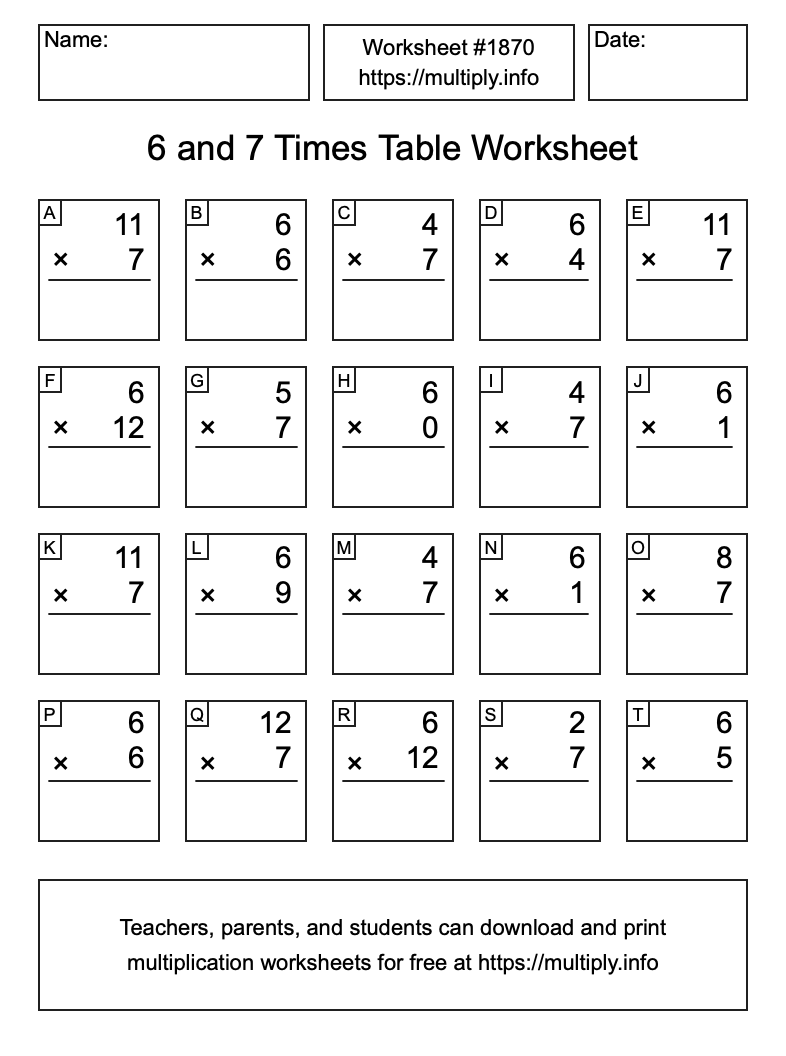 6 and 7 Times Table Worksheet #1871