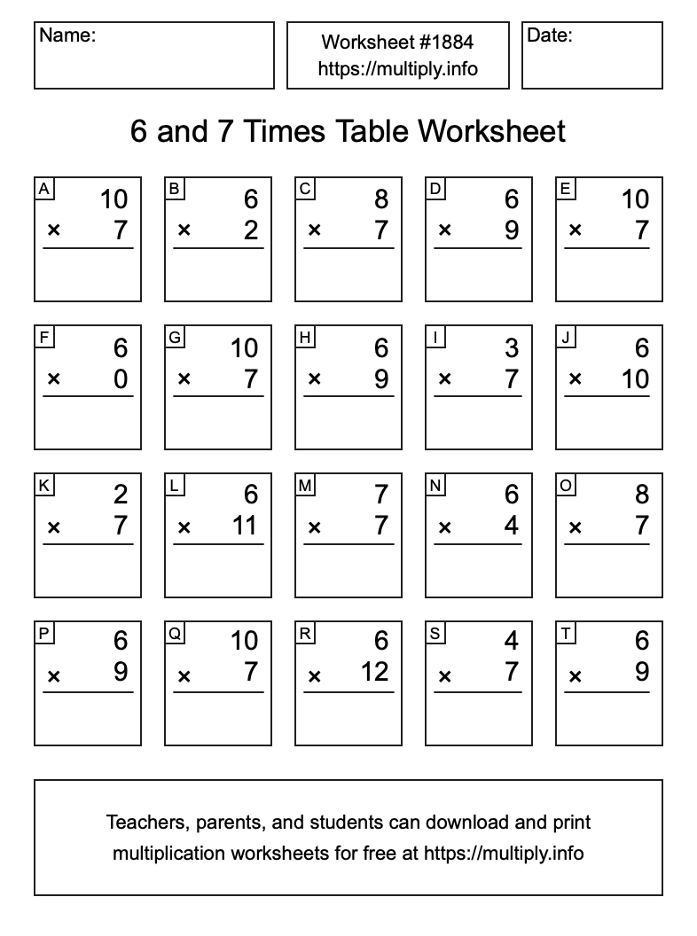 6 and 7 Times Table Worksheet #1885