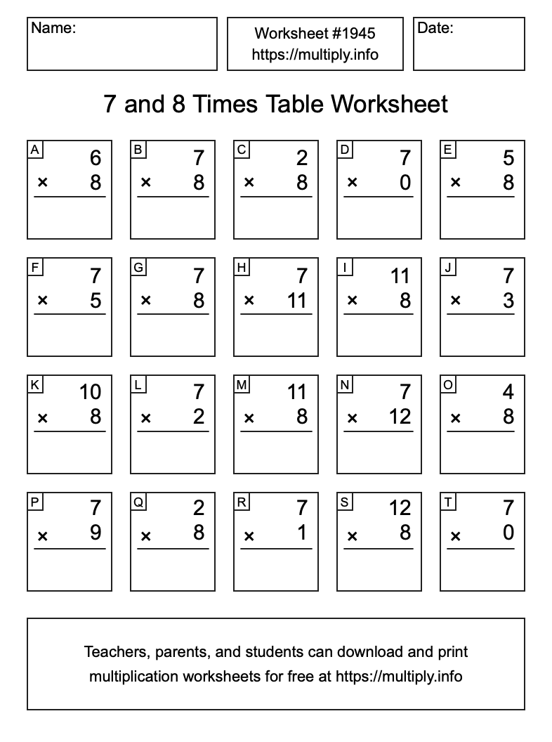 7 and 8 Times Table Worksheet #1946