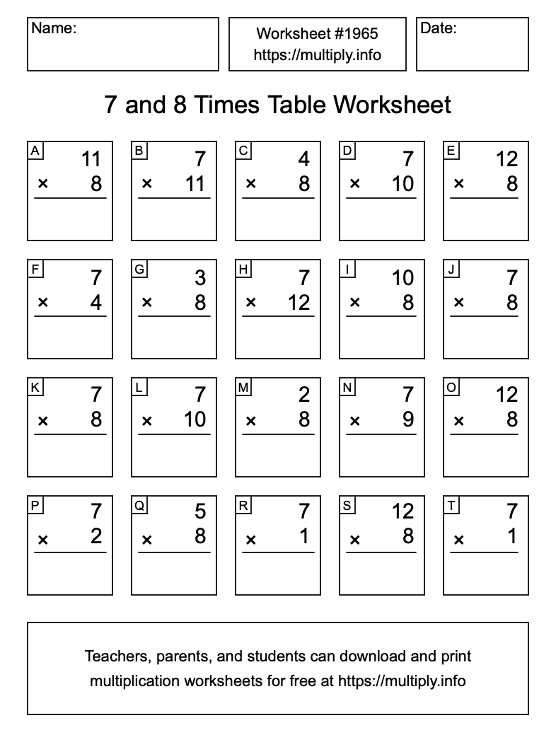 7 and 8 Times Table Worksheet #1966