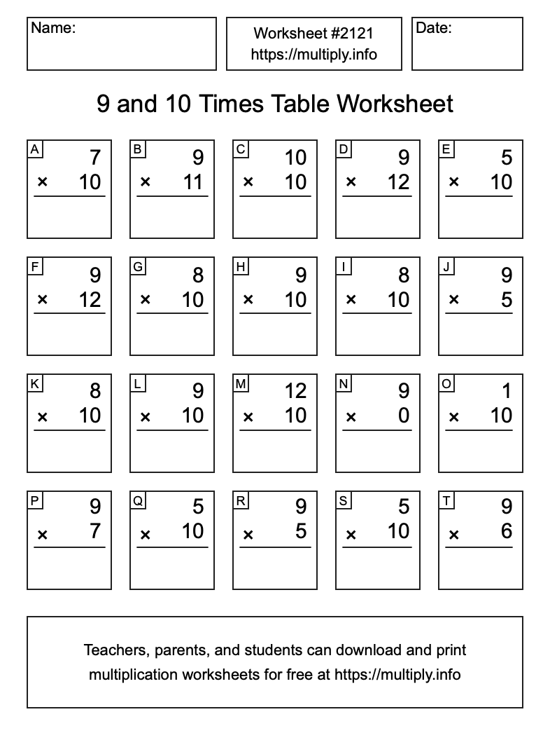 9 and 10 Times Table Worksheet #2122