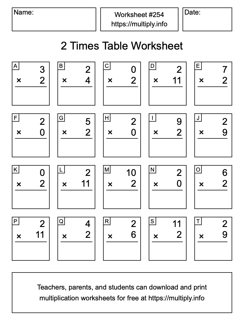 2 Times Table Worksheet #255