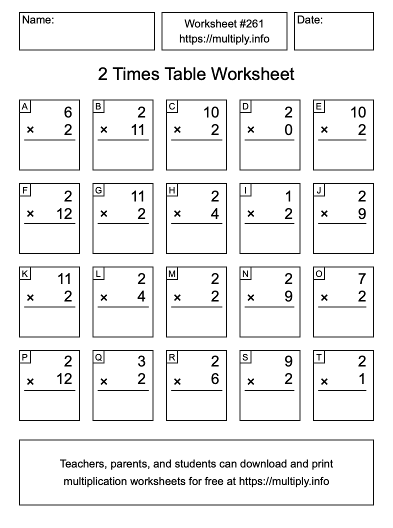 2 Times Table Worksheet #262
