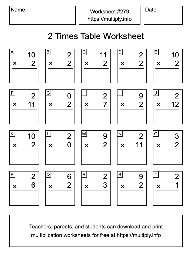 2 Times Table Worksheet #280