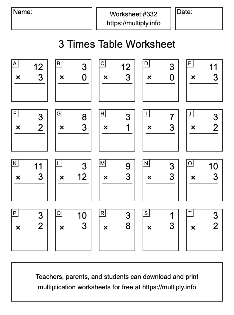 3 Times Table Worksheet #333