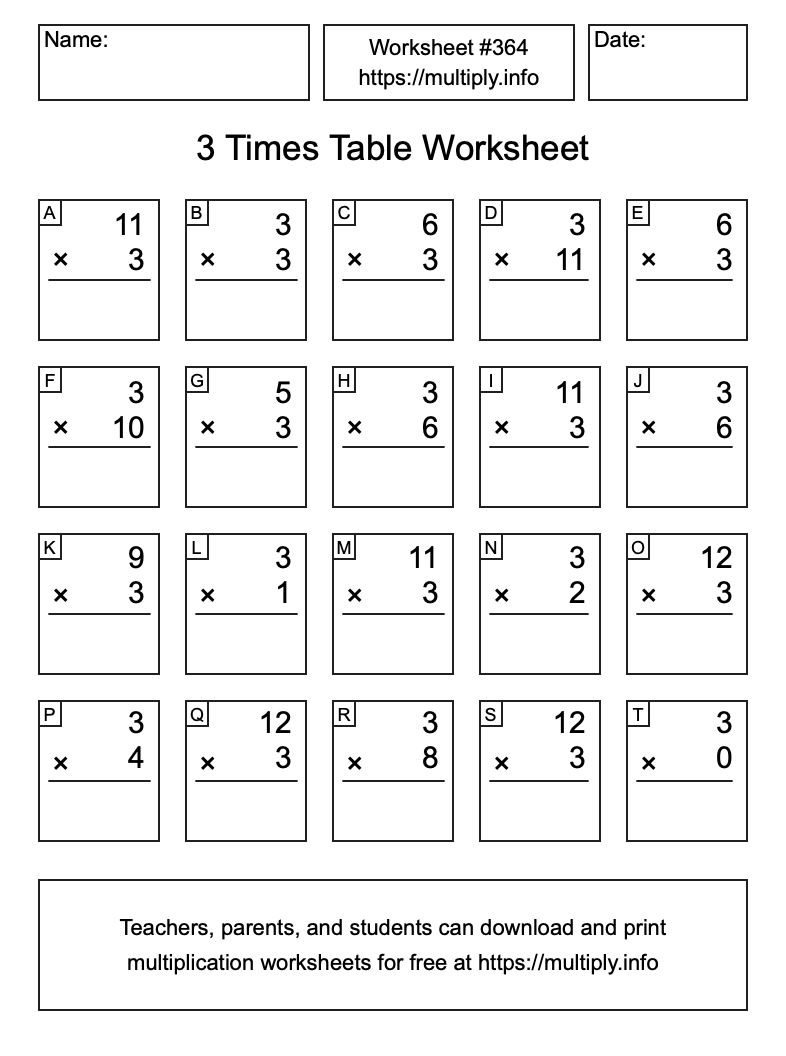 Here is the 3 Times Table Worksheet #364. This worksheet contains problems related to the multiplication table of 3. Print and/or save the worksheet using the buttons below the image. You can also drag or right-click on the image to download it to your device.
