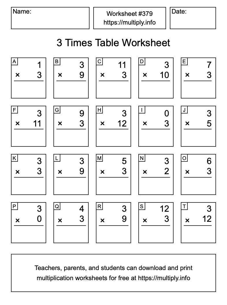 3 Times Table Worksheet #380