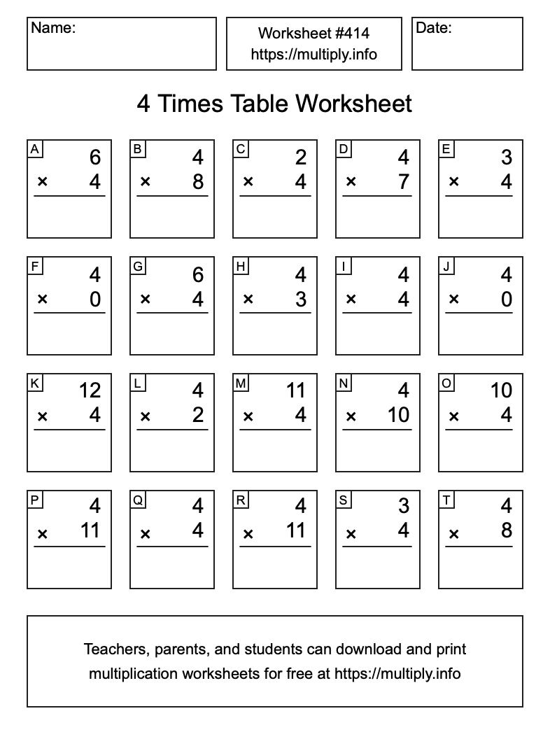 4 Times Table Worksheet #415
