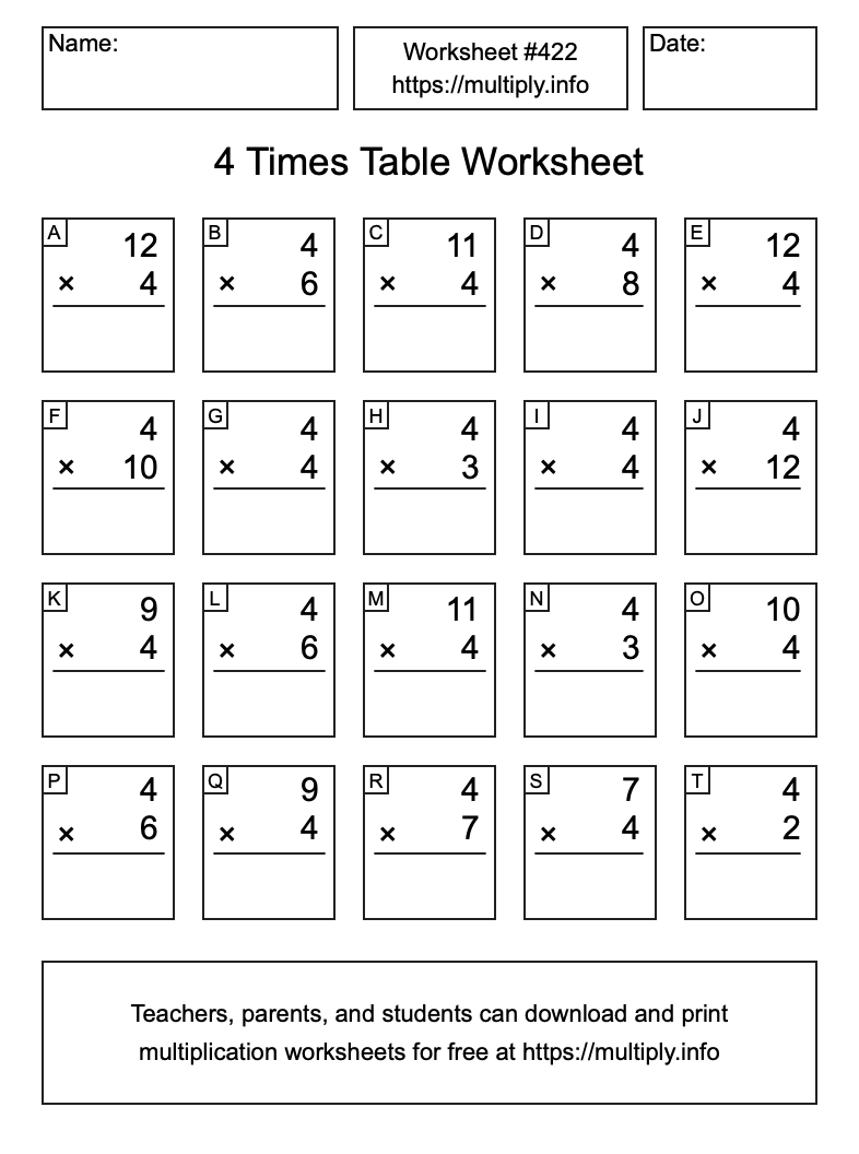 4 Times Table Worksheet #423