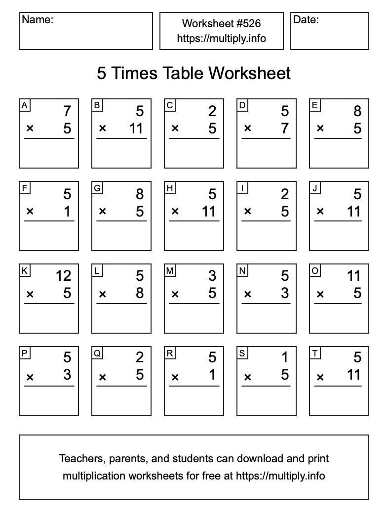 5 Times Table Worksheet #527