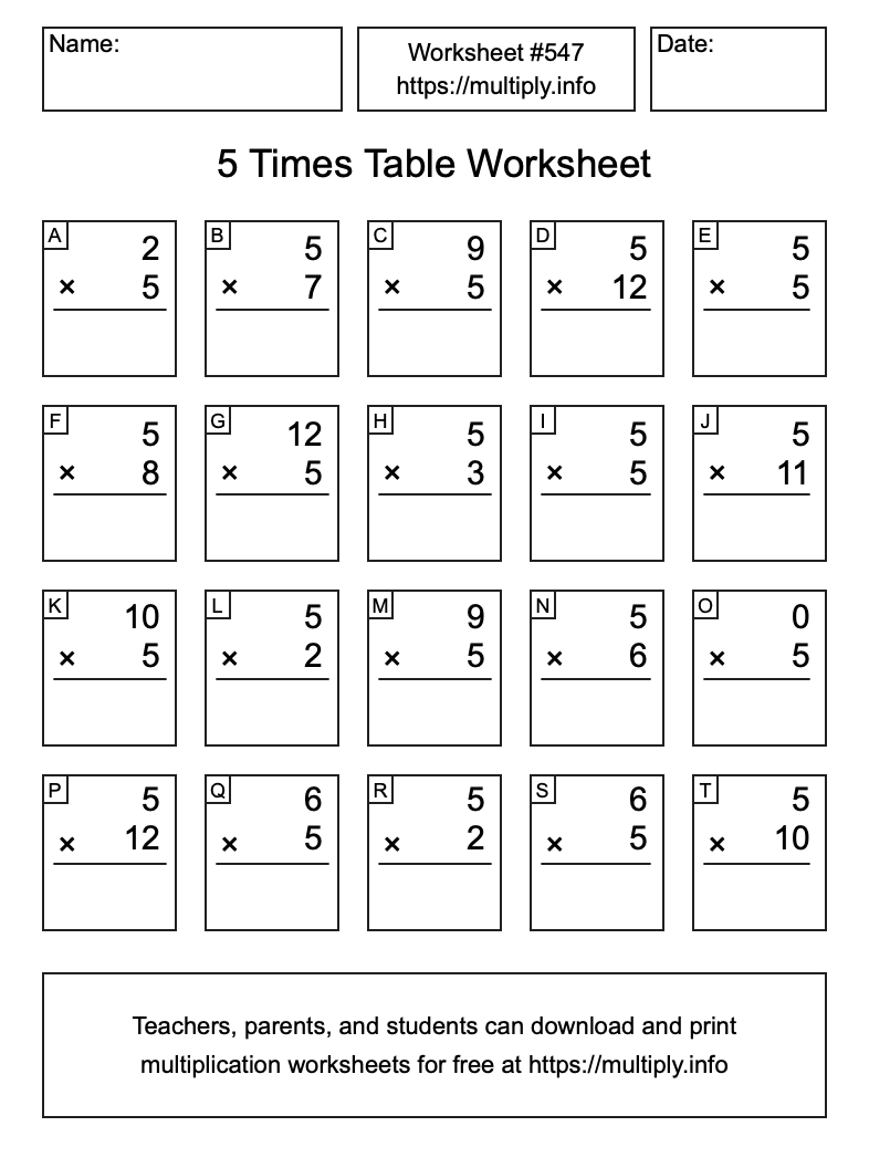 5 Times Table Worksheet #548