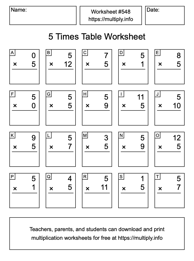 5 Times Table Worksheet #549