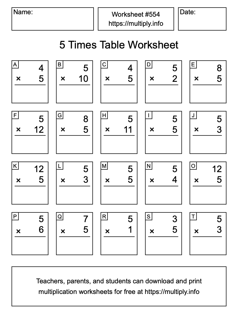 5 Times Table Worksheet #555