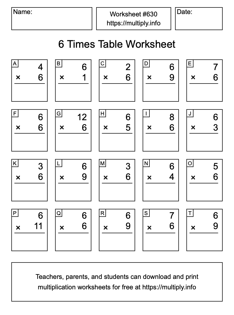 6 Times Table Worksheet #631